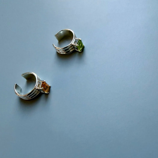 Coil Earcuff 天然石をセットしたコイル状のイヤカフです。天然石はアメジスト、ペリドット、シトリンからお選び頂けます。立体的な石留めで小さいながらもゴロっとした存在感。顔周りのアクセントになります。 Material:SILVER925、天然石Price:¥16,060 購入はコチラから☞